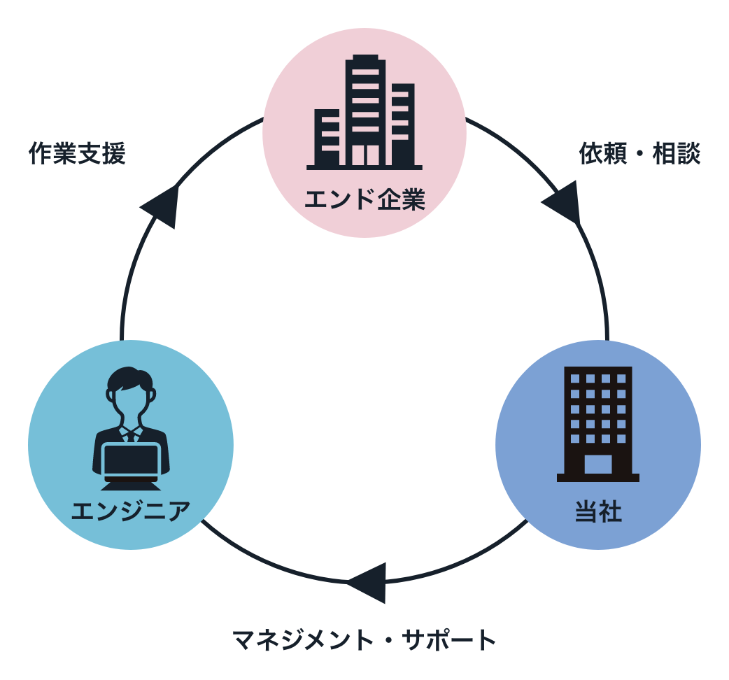 求められるスキルと経験を備えた技術者をクライアント企業に派遣するSES業務を行っています。
